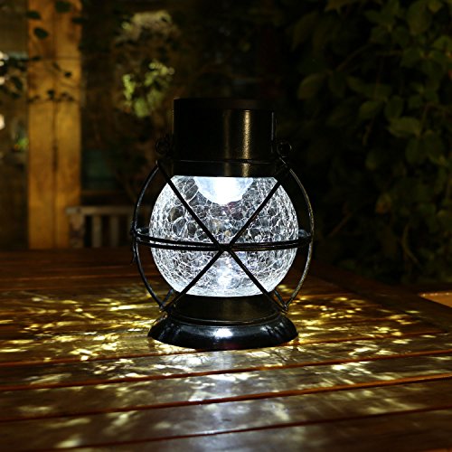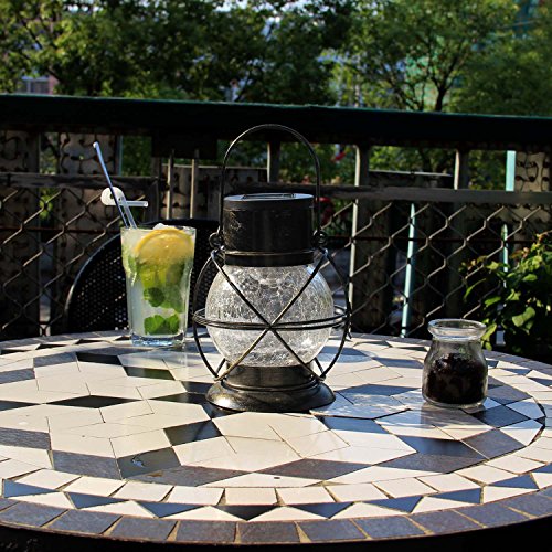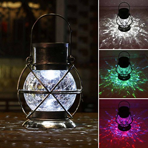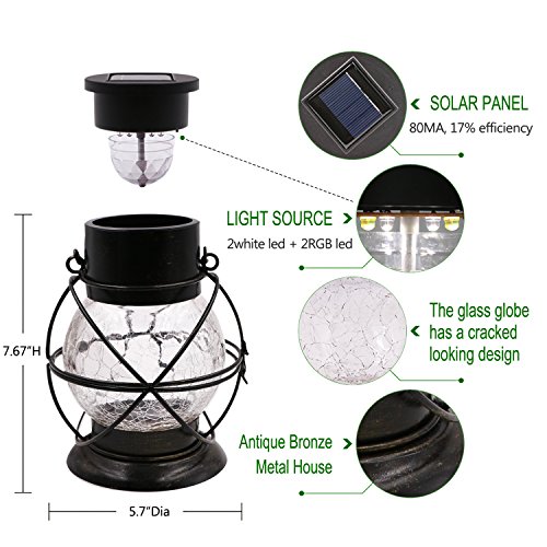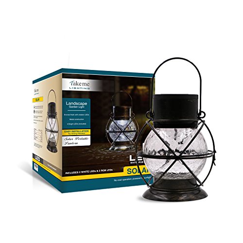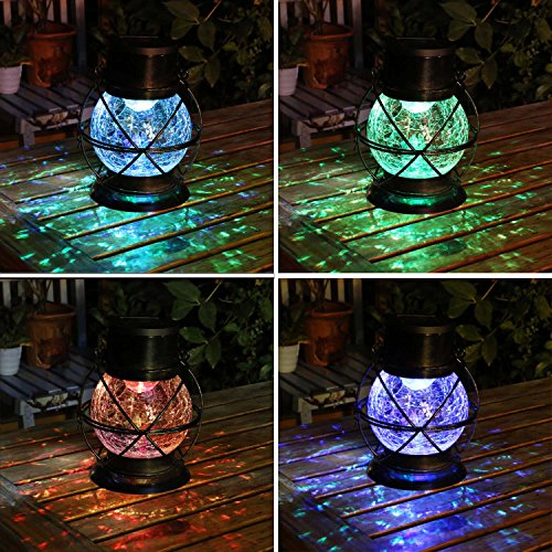TAKEME Solar Lantern, Metal & Glass Outdoor Garden Lights,Vintage Decorative Lamp Color Changing Twinkling Crackle Lights