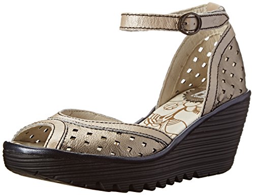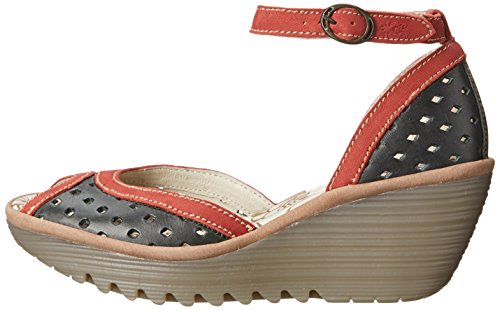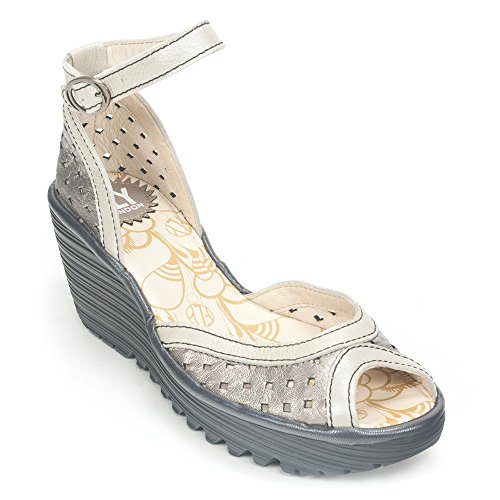 Fly London have brought out a fabulous new shades to glam up your day time outfit this year! A leather upper with cut out details on upper, buckle fastening and printed fabric insole on a distinctive cleated wedge sole unit.Feature