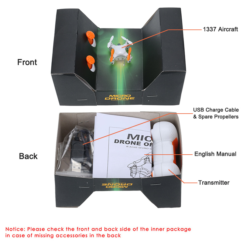 Function: up, down, left, right, forward, backward, side-to side flight, 3D Roll, Headless Mode, Auto-return