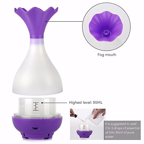 Essential Oil Diffuser LuckyFine USB Humidifier Jade Vase Aromatherapy Diffuser Mist Maker with Light Purple