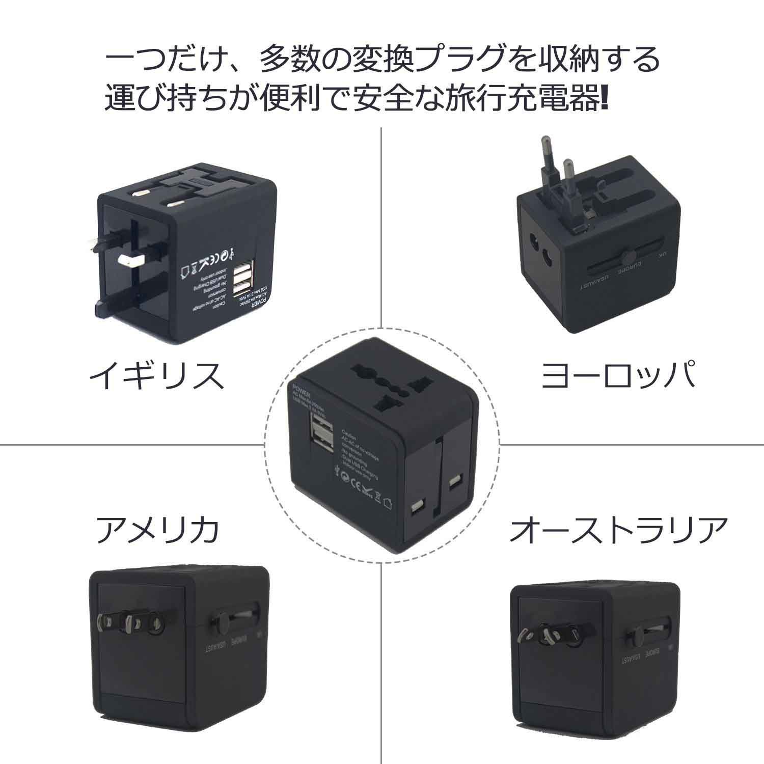 J & L travel charger storage charger 2 conversion plug with USB charging port AC power adapter fast charge Charging smartphone / tablet / personal computer etc. correspondence Europe, America, Asia etc. worldwide usual