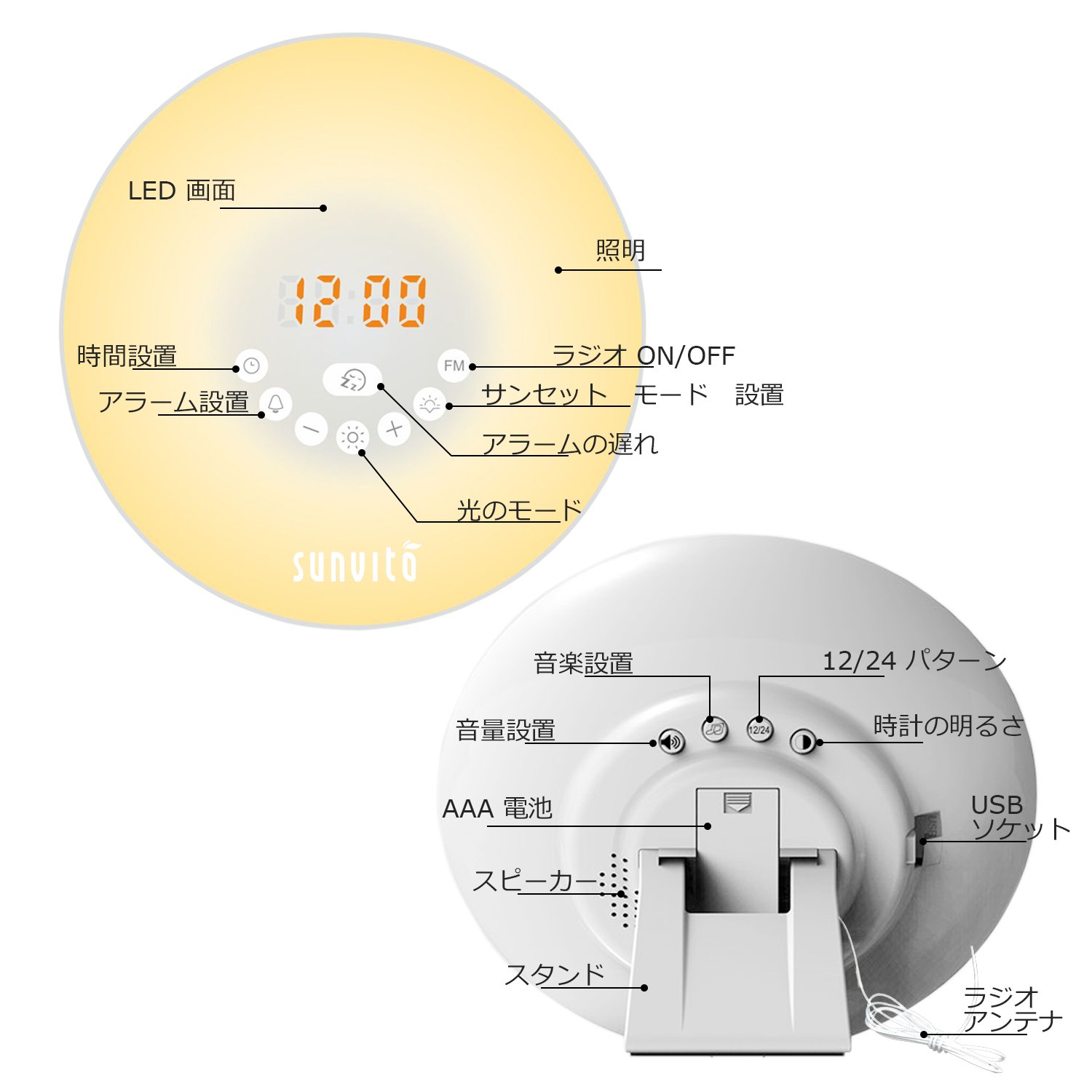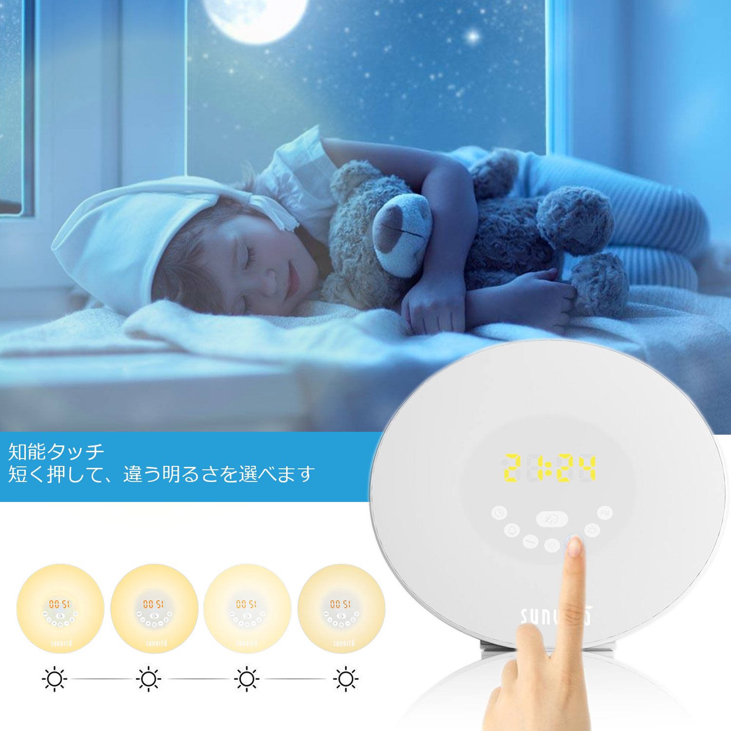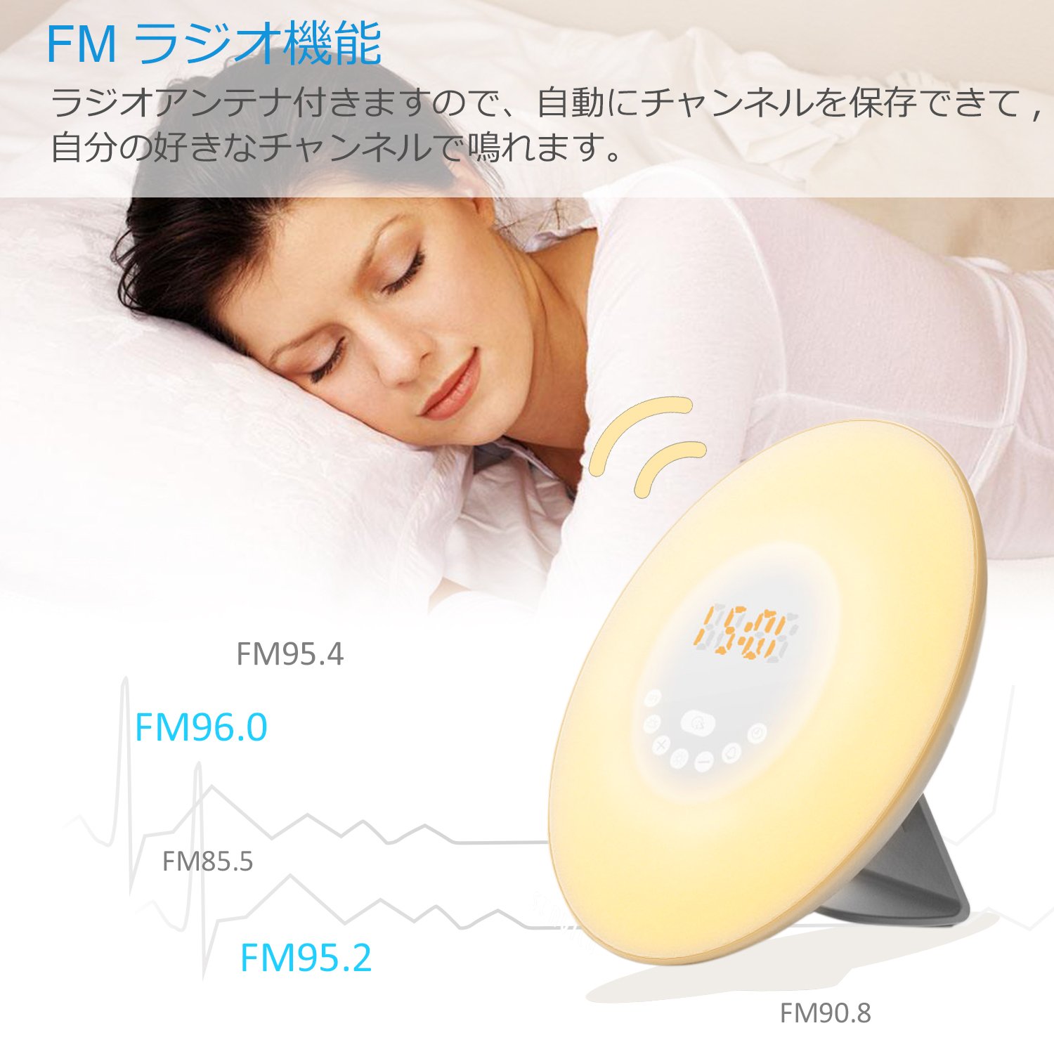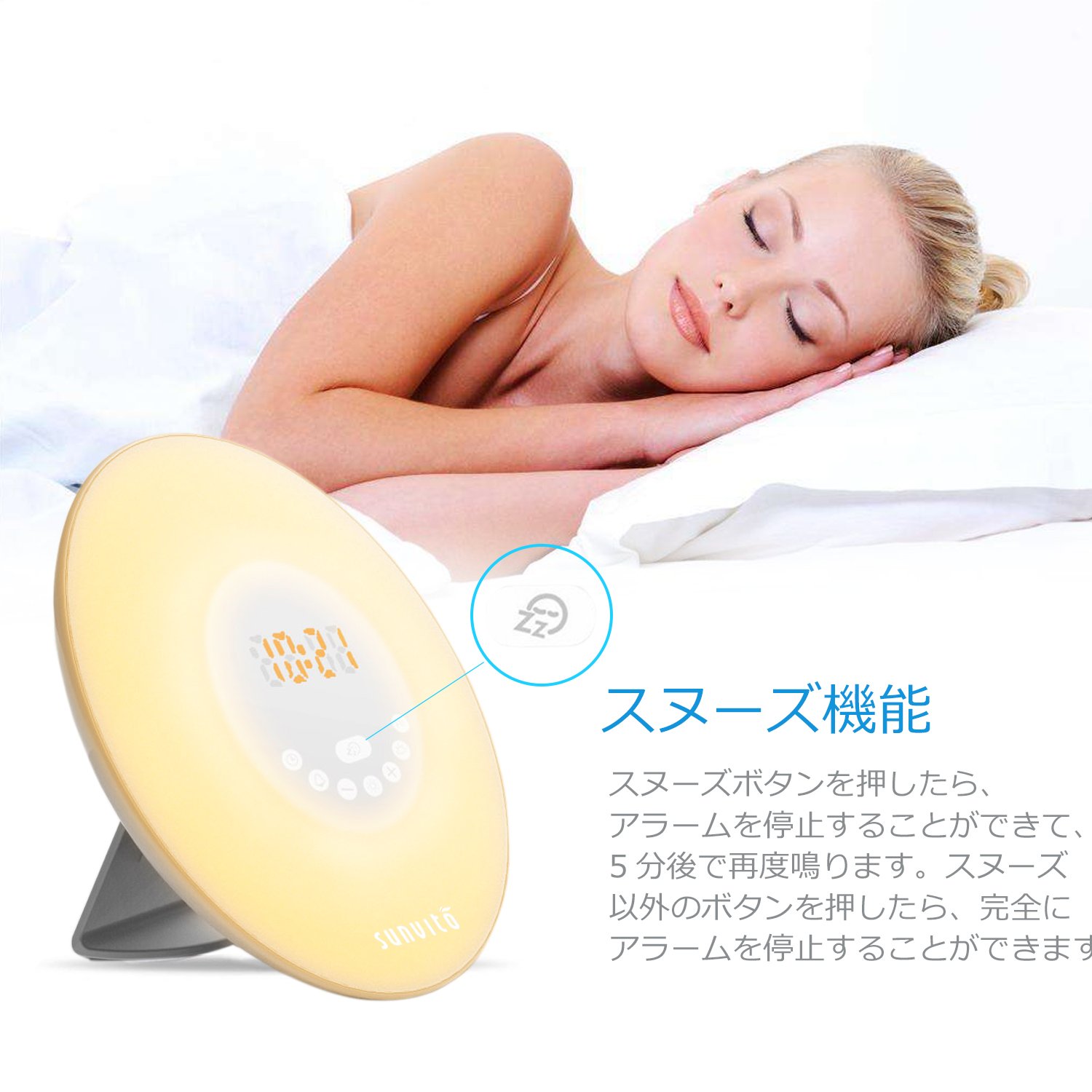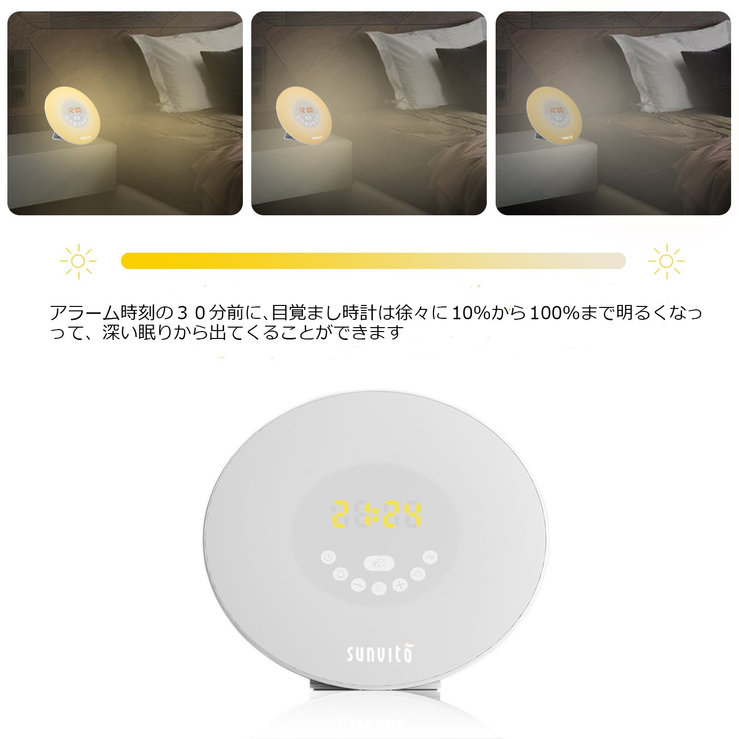 When this alarm clock is 30 minutes before the alarm time, the light will gradually brighten from 10% to 100% brightness until the set time and can comfortably come out of a deep sleep.