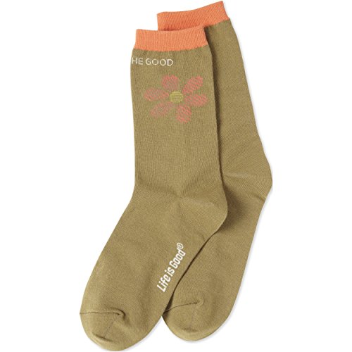 -. Binding : Apparel -. Brand : Life is Good -. Department : Womens -. Feature : 1x1 ribbing at cuff / Life is Good at the foot / The Life is Good Company donates 10% of all sales to kids in need / Cotton/Nylon/Spandex -. Label : The Life is good Company -. Manufacturer : The Life is good Company -. ProductGroup : Sports -. ProductTypeName : OUTDOOR_RECREATION_PRODUCT -. Publisher : The Life is good Company -. Studio : The Life is good Company -. Title : Life is good Women's Grow The Good Daisy Crew Socks