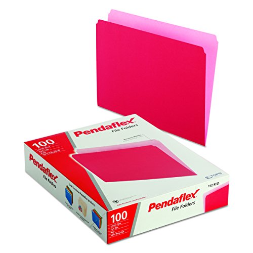 Pendaflex Tone File Folders, Straight Cut, Top Tab, Letter Size, Light Red, 100 per Box (152 RED)