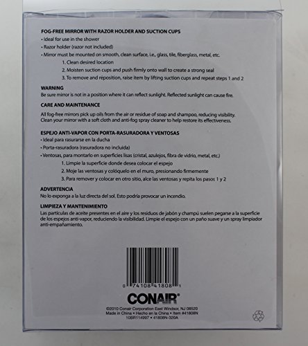 -. Title : Conair Conair Fog-Free Suction Cup Mirror with Razor Holder
