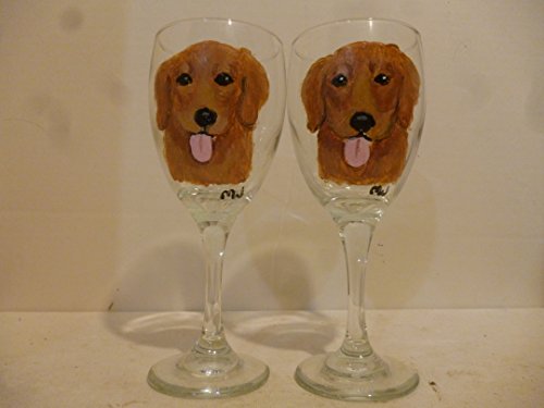-. Title : Golden Retriever Dog Wine Glasses set of 2 Hand Painted by Mary Wilson Pet Lovers Boutique