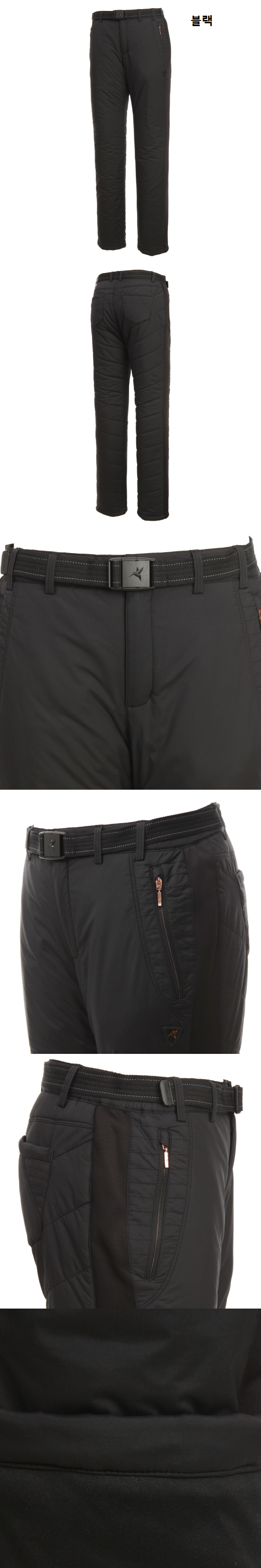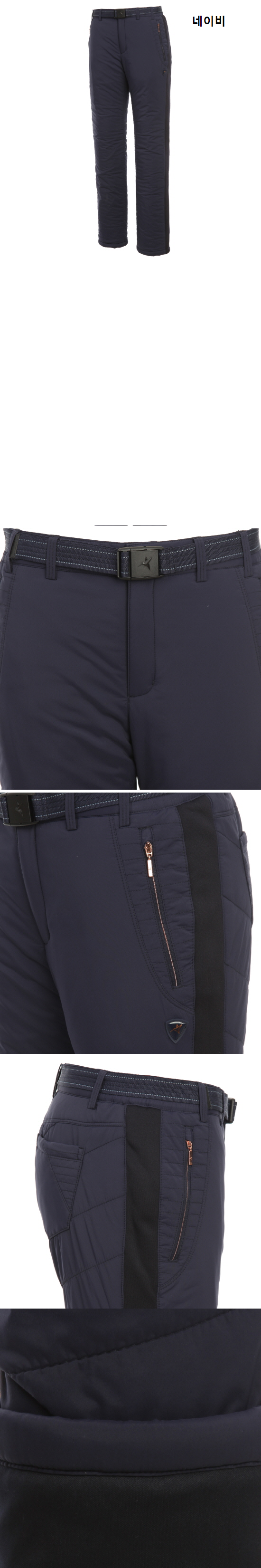 1. 신축성이 우수한 나일론 스트레치 소재에 충전재를 사용한 보온 팬츠.