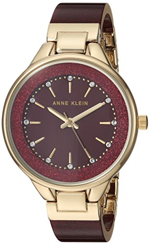 Sparkling Swarovski crystals add sophisticated sparkle to face of this bangle style watch from Anne Klein.