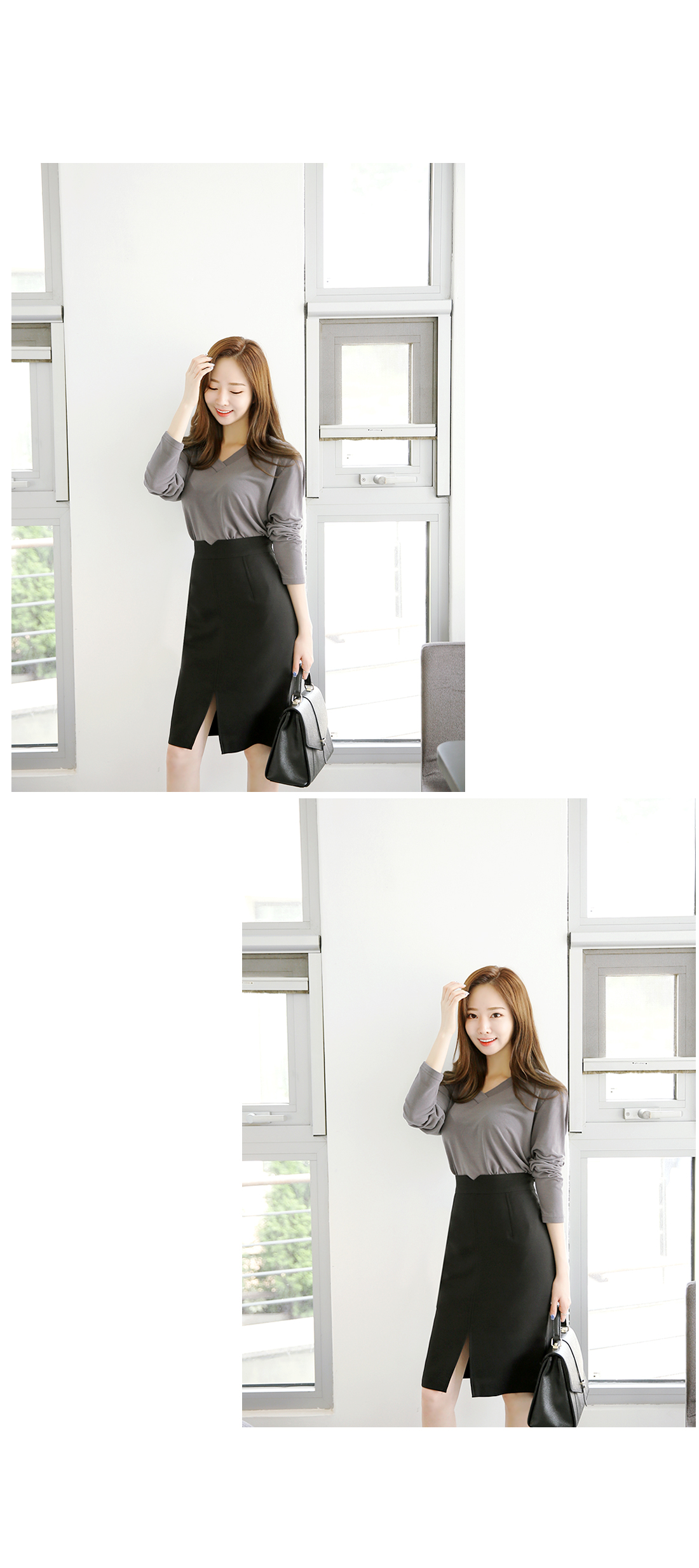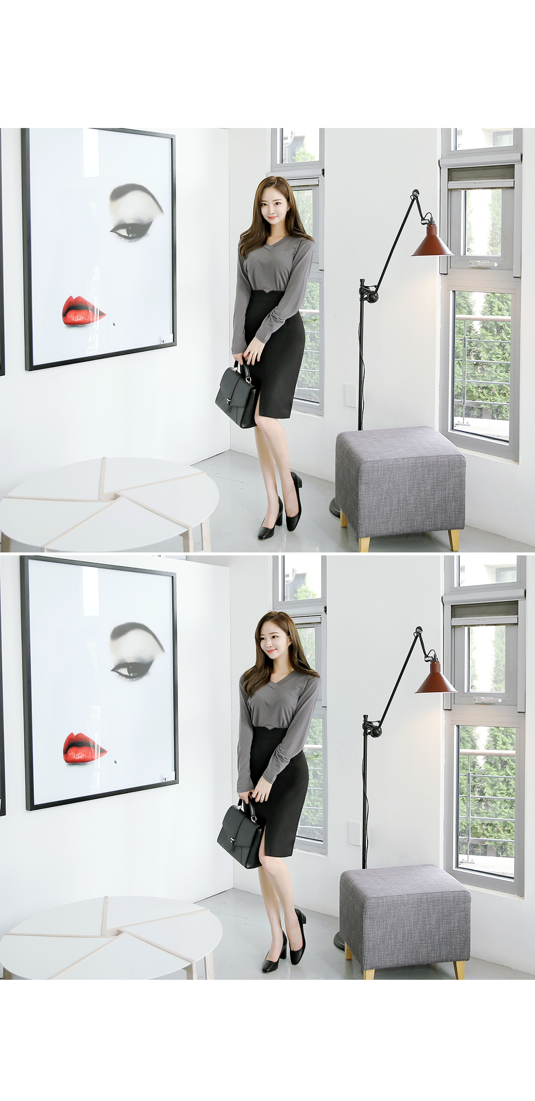 살짝 쇄골라인이 드러나는 V 네크라인으로 나왔어요.