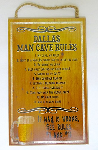 Dallas, man cave rules, " if man is wrong, see rules #1 and #11", Wall Decor, Wood Wall Plaque, size 16" x 10". 2