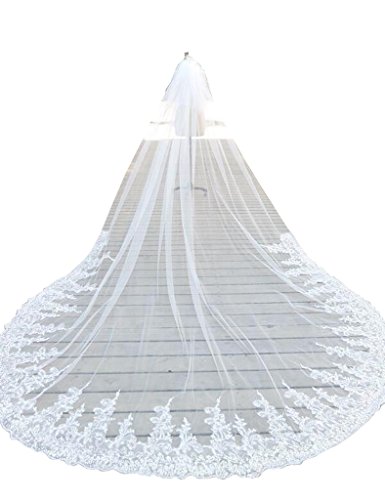 Fenghuavip 1T 1 Tire Lace Veils for Bride Long Bridal Wedding Veil Free Comb