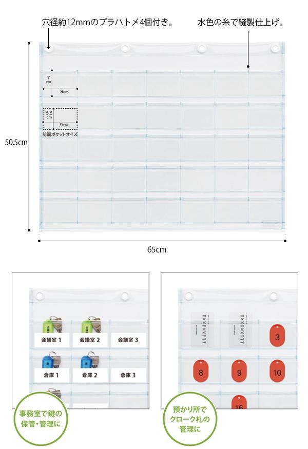 | 様々な用途に使えるウォールポケットです ポケットの上にポケットが付いたWポケット仕様 入れる物の名前や番号を一緒に入れることができるので 保管・管理用の壁面収納に最適です 鍵の保管や クローク札用にもおすすめです |