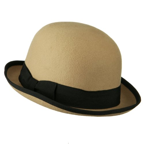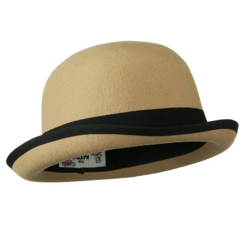 -. Binding : Apparel -. Brand : Hatiya -. Department : mens -. Feature : Made of 100% wool. / Crown measures 4 inches deep with solid hat band. / Brim measures 2 inches wide, upturned. / Soft, thick and warm material. / Hand washable. -. ProductGroup : Apparel -. ProductTypeName : HAT -. Title : Bowler Wool Felt Hat with Solid Band