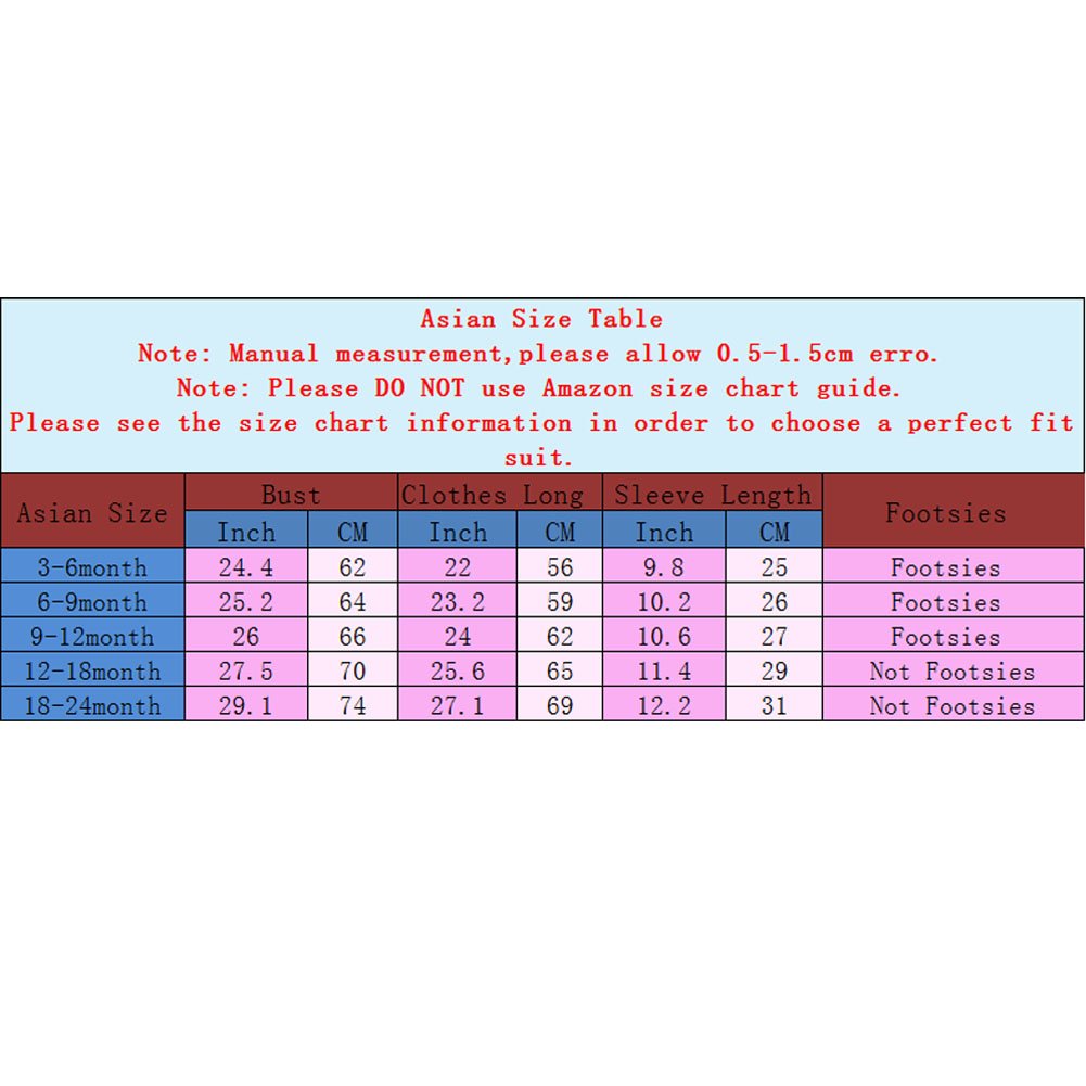 3-6 M: Length 56 cm. Sleeve length 25 cm. Bust 62 cm. Foot