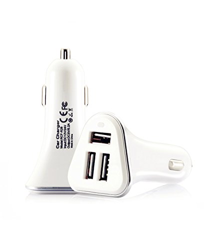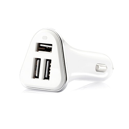 Green Convenience Car Charger, White, 3 Port Rapid Cigarette USB Car Charger With 5V, 5.2A, 30W for iPhone, iPad, iPod, Samsung, HTC, MP3 Players, Smartphones Tablets and More.