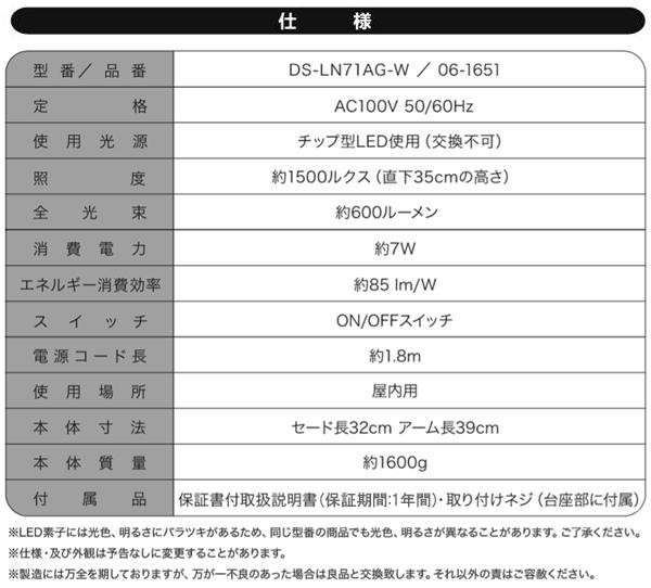 ちらつきや照射面の反射の少ない目に優しい明かりなので勉強や事務作業にぴったりです。 製造国:中国 ※サプライヤー直送品 ご注文後2~3営業日後の出荷となります【商品名】オーム電機 OHM LEDデスクスタンド DS-LN71AG-W