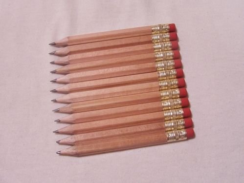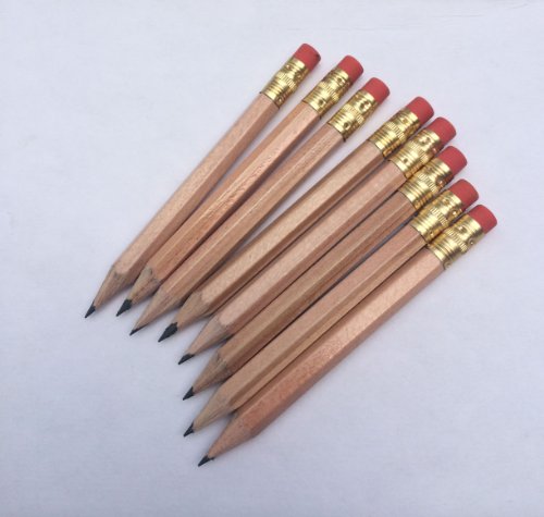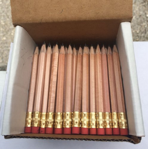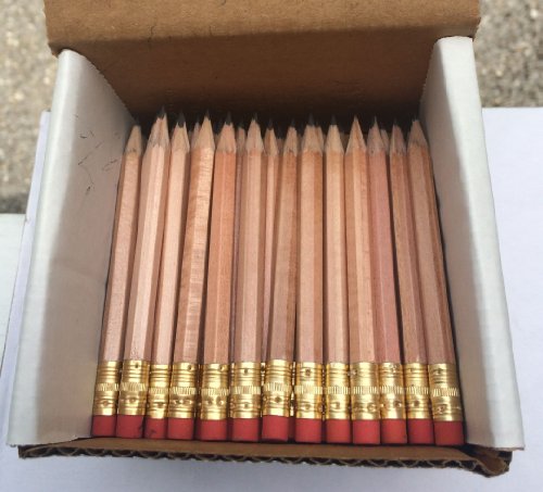 Half Pencils with Eraser - Golf, Classroom, Pew, Short, Mini, Non Toxic, Wooden, Hexagon, Sharpened, #2 Pencil, Color - Natural Wood, Box of 72, (Half Gross) Golf Pocket Pencils TM