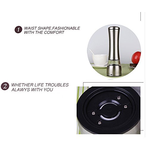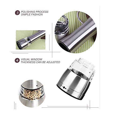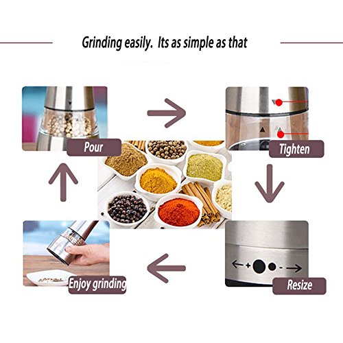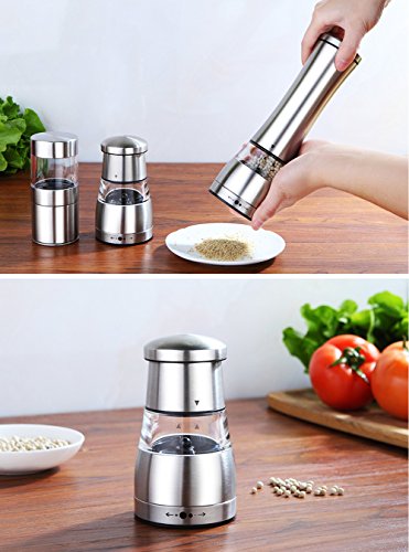 Fastnova Adjustable Ceramic Rotor Salt and Pepper Grinder, Manual Brushed Stainless Steel Pepper Mill and Salt Mill with Tall Tower Body