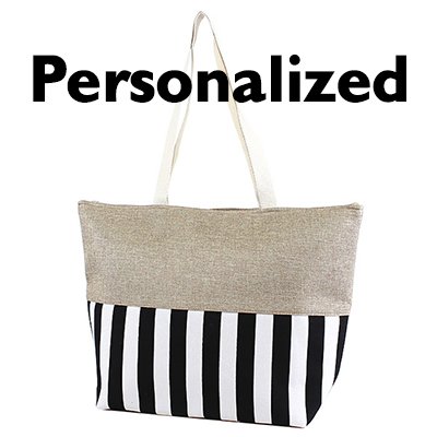 -. Brand : 101Beach -. Department : womens -. Feature : 22" Wide x14" Tall x 7" Deep / Available Blank or Personalized / Top Zipper Closure - Lined with Slip Pocket Inside / Canvas & Burlap -. ProductGroup : Apparel -. ProductTypeName : LAGE -. Size : Large -. Title : Large Zipper Top Stripe P.R.Int Canvas Beach Bag Tote - 22"x14"x7"
