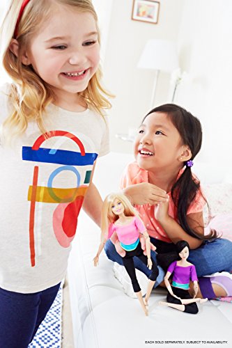 Barbie is always on the move, and now she can move in more ways than before! With Barbie Made to Move doll, you can do anything! The storytelling fun is endless when Barbie doll can do things just like you! Capture the action with the ability to move and pose in ways that mimic realistic action -- from riding a bicycle and playing a guitar to doing gymnastic bends and sitting cross-legged to owning a runway or taking selfies, Barbie doll's realistic moves -- guided by you -- can do it all! Barbie Made to Move doll has 22 "joints" -- in the neck, upper arms, elbows, wrists, torso, hips, upper legs, knees AND ankles -- for an incredible range of movement! Always fashionable, she wears a sleek modern outfit with black leggings and a colorful top to highlight her dynamic posability. The storytelling possibilities -- and the imaginative moves -- are limitless! Includes Barbie doll wearing fashions. Doll cannot stand alone. Colors and decorations may vary.Feature