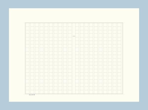 | 仕様 | 用紙サイズ:258×360mm(ほぼB4判) 罫線範囲:198×270mm 上の余白:37mm、下の余白:23mm、横の余白:45mm 升目の大きさ:10×10mm(縦×横) 罫線の色:グレー ルビ罫有り/400字詰め 100枚PP袋入/クリーム紙 |