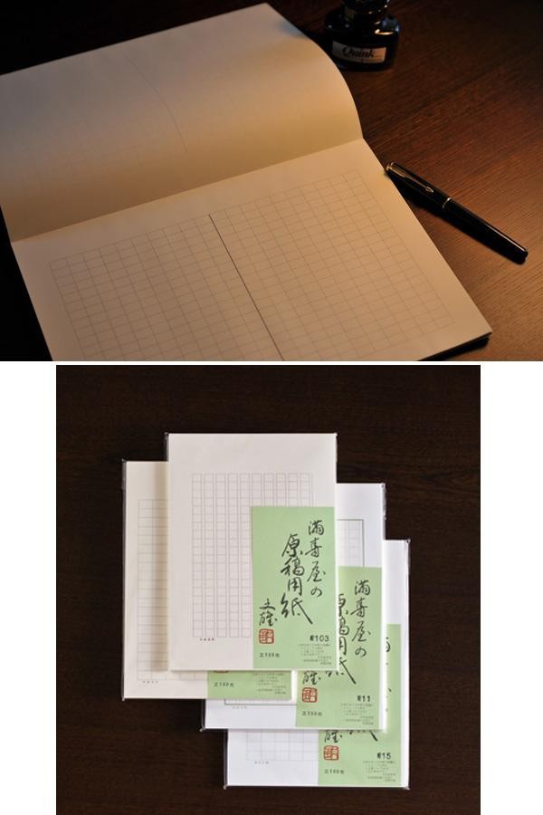 原稿用紙のために、満寿屋が独自に開発したクリーム色の紙です。どのようなインクを用いても、滲みにくく、裏抜けしにくく、滑らかな書き心地です。照り返しによる目への負担も考慮されています。 |