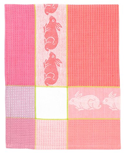 100% Cotton Pink & White 20"x28" Dish Towel, Set of 6 - Rabbit Pink