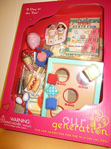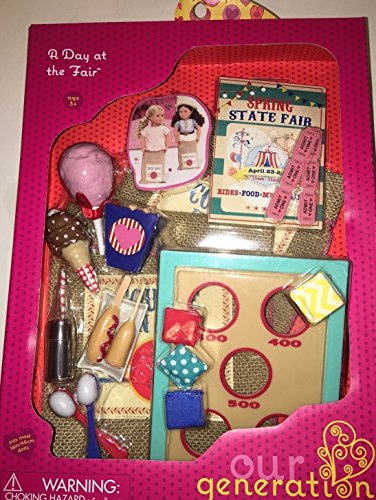 Your little one will love the A Day At The Fair Accessories for her favorite doll. This fun set has bright and colorful pieces including game set, fair tickets and pretend food items. The doll accessories add an extra element of imagination for your child's favorite doll. Playing make believe just got even better. Recommended for ages 3 and up.Feature