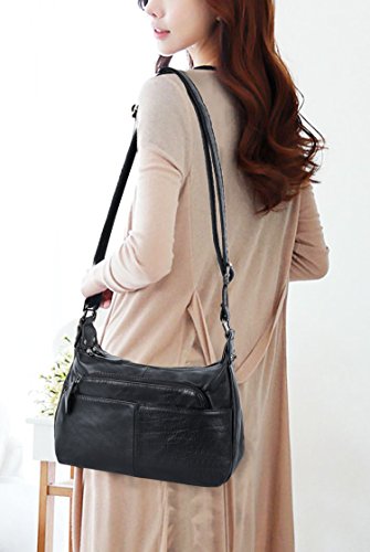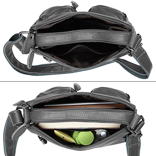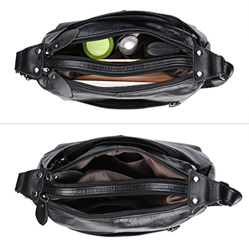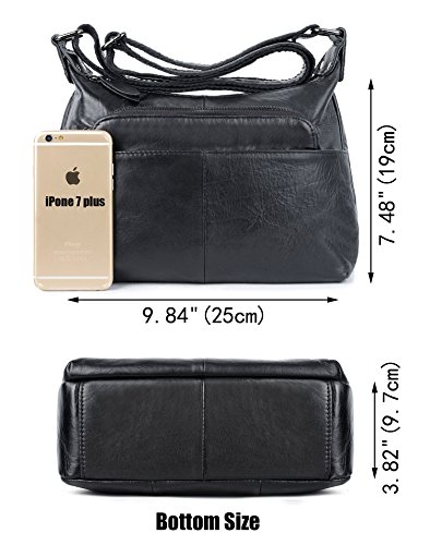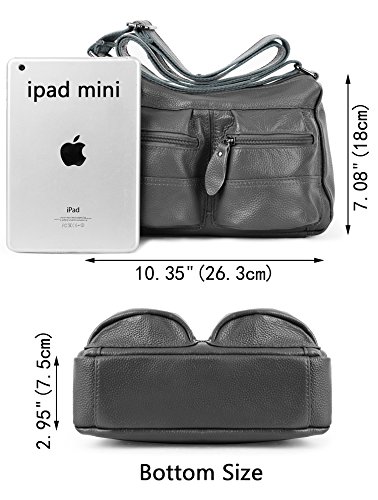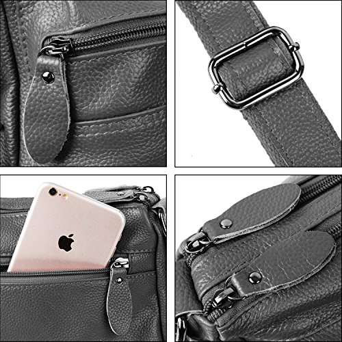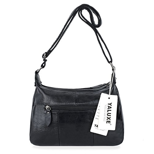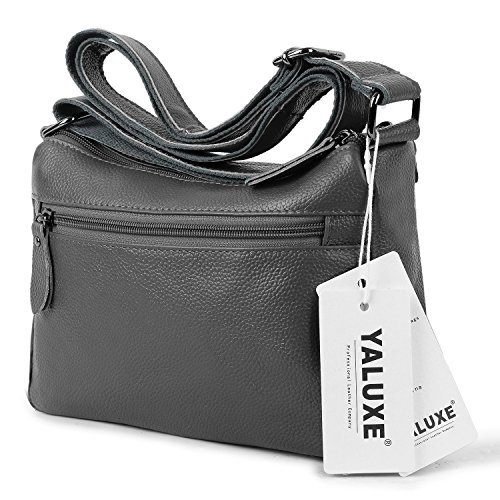 -. Brand : YALUXE -. Department : womens -. Feature : Cowhide Leather with deep brown fabric lining. This is a small size crossbody mini purse for light use, classic looking yet durable. / This small mini bag can hold key/ glasses/ cards/ wallet/ smartphone/ small makeups and any other small items. / Exterior: 3 Front zipped pockets, 1 back zipper pocekt. Interior: a main compartment with 2 open pockets and one zipped pocket. / Come with an adjustable strap ( length up to 52" ) to make it 3 ways to carry: Top-Handle / Single Shoulder/ Crossbody. / Dimensions: 8"L x 7.5" H x 5"W. Weight is 1.06 pounds. Handle Top:8"(long enough to put on shoulder) -. ProductGroup : Shoes -. ProductTypeName : HANDBAG -. Title : YALUXE Women's Cowhide Genuine Leather Multi Zipper Mini Purse Small Crossbody Shoulder Bag
