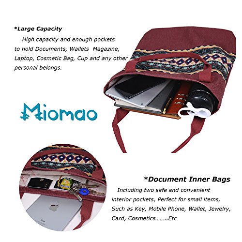 -. Title : Miomao Women's Canvas Tote Bag for Women Bohemian Style Canvas Shoulder Bags Foldable Handbag