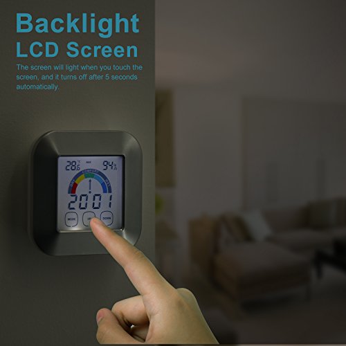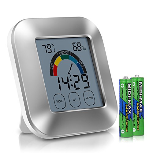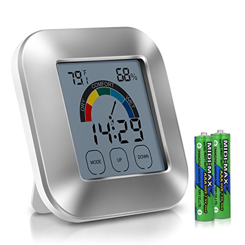 Temperature Gauge Humidity Monitoring Measure indoor temperature and humidity to keep the good condition in your room, protecting against the growth of bacteria, mites and mold. Fahrenheit or Celsius available (MODE button); MAX or MIN temperature and humidity records available (UP button); Range of temperature detecting : 32℉to 122℉; Range of humidity detecting:20% to 95% with resolution 1%.