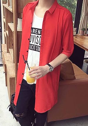 • 無地なので、シンプルに着こなせる半袖のロング丈シャツ
