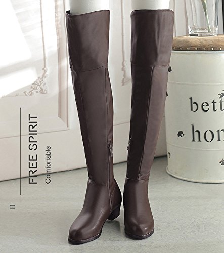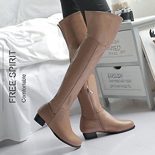 Binding : Apparel Product Description The pair of right shoes can make all the difference. The boots season comes. A pair of long boots is a must-have for a lady who want to be impressed in the crowed. If you're trying to get boots that will send a message with your every step, there's no finer footwear to add glamour close to you than these tall boots from Mofri. These boots don't whisper; they scream with their distinctive and trendy design. This pair of boots make you stand out in any crowd and are sure to heat things up no matter what you wear with them. The block heels raise your height and giving the shoes a chunky shape that is reflection of the latest trends. These shoes from Mofri is made from top quality vegan synthetic leather. Leave those boring basic boots behind. Make this pair boots as your fashion secret weapon and you'll be able to have some sexy appeal which will be the soul of your everyday ensembles. Order a pair in your favorite color! Can't decide? Why not get more? You'll still pay less than the price you would for a single designer pair elsewhere. We will make you always be on the cutting edge of women' s fashion. Mofri is a legal trademark which has registered in United Stated Patent Trademark Office. All right reserved. 0