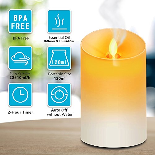 Studio : hysure Publisher : hysure Binding : Baby Product Product Description This is 120ml ultrasonic humidifier air purifier. With the compact and portable design, nice candle shape and unique style: especially design for those people who love life. Features: ?Flame lights will gently swing, looks like a real candle. ?No filters required. ?Auto shut off for safety. ?Whisper quiet. ?Helps with dry, chapped skin, chapped lips and dry sinuses. Button instructions: ?First time: Turn on ?Second time: Turn off the spotlight ?Third time: Turn off ?Keep press for two seconds: Timing two hours and the indicator light turns blue flash twice ?Continue to press for two seconds: Back to the continuous working mode, green light will always keep on. Notices: ?Oil and measuring cup are not included in the package. ?Tap water is the best choice. ?Please use 100% pure water-soluble essential oils for durability. ?It is an essential oil diffuser, but you can use it as a small humidifier without oils. ?Diffuser does not have therapeutic benefits, but the oils make it. ?Please add water below the Max line(less water, more mist). Specification: 1). Size: 91*91*150mm 2). Weight: 300g 3). Voltage: 12v 4). Power: 10w 5). Color: White 6). Volume: 120ml 7). Spray quantity: 10-30ml/h 8). Timer: 2h 9). Coverage Area: 10-15m² Package Included: 1* 120ml Aroma Diffuser 1* Charger Adapter 1* User Manual