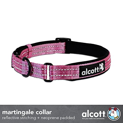 Studio : PAW - Pet Adventures Worldwide Publisher : PAW - Pet Adventures Worldwide Binding : Misc. Product Description Alcott Adventure Martingale Collars are designed for a lifetime of adventure! Featuring highly visible reflective stitching and super comfortable black neoprene padding, these adjustable collars have an integrated black metal D-ring for a secure leash connection walk after walk. If you're looking for a more comfortable alternative to a choke collar or if your dog slips out of their regular collar, then a martingale collar is a perfection solution! They are available in 3 sizes and 5 vibrant nylon colors that have a subtle chevron weaving pattern. Small collars have 5/8" wide nylon and adjust from 10" to 14", medium collars have 3/4" wide nylon and adjust 14" to 20" and large collars have 1" wide nylon and adjust 18" to 26". Matching nylon leashes, harnesses and retractable leashes are also available!. 0