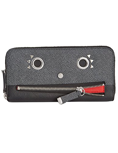 New Calvin Klein Saffiano Funny Face Zip Continental Wallet. Color Grey/Black.