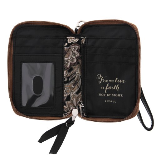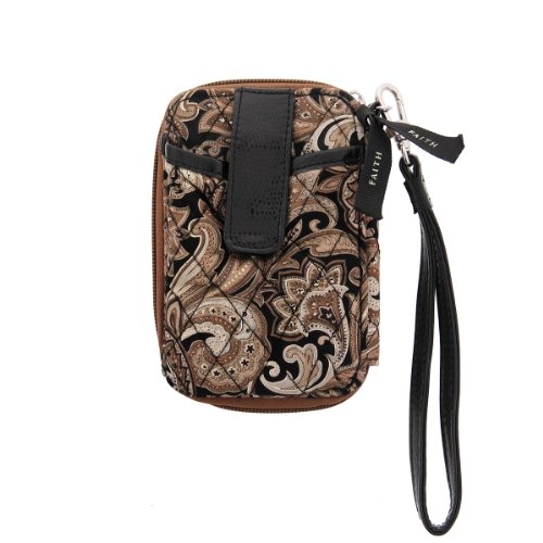 Brown Quilted Paisley All-in-One Wristlet w/"Faith" Badge - Phone Case & Wallet