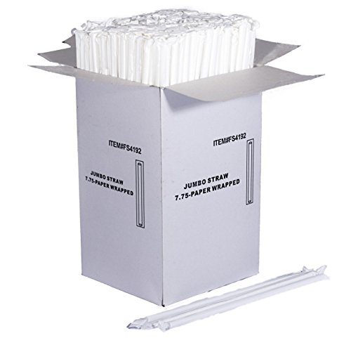 TashiBox 7 3/4" Individually Wrapped White Drinking Straws - 350 count