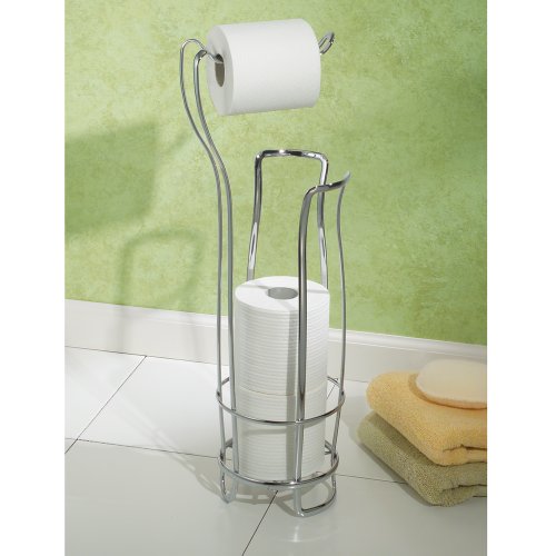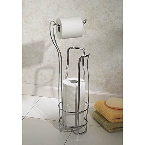 InterDesign Axis Free Standing Toilet Paper Holder – Extra Toilet Roll Storage for Bathroom, Chrome