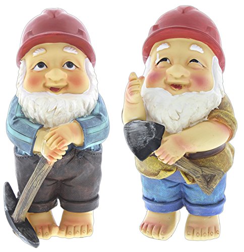Set of 2 Mayrich 10" Resin Gardening Gnomes with Hardhats (Happy & Bashful)