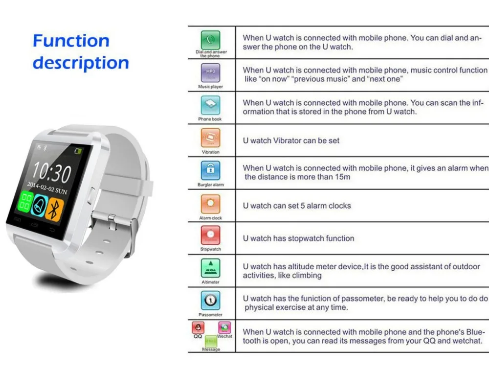 12.Anti-lost alarm function: When cellphone left watch alarm automatically, after a certain distance to avoid lose the phones