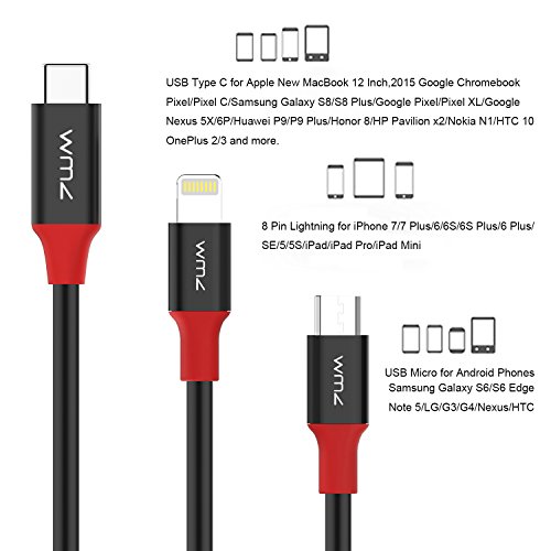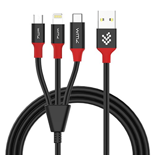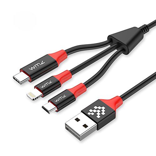 Lightning Cable+Type C+Micro 3 in 1 Charging Cable,WMZ 3.3ft Multiple Charging Cable USB Charger Cord for iPhone 7/7 Plus/6/6S/6S Plus/6 Plus/iPad/Macbook/Samsung Galaxy S8 Plus and More(Black)