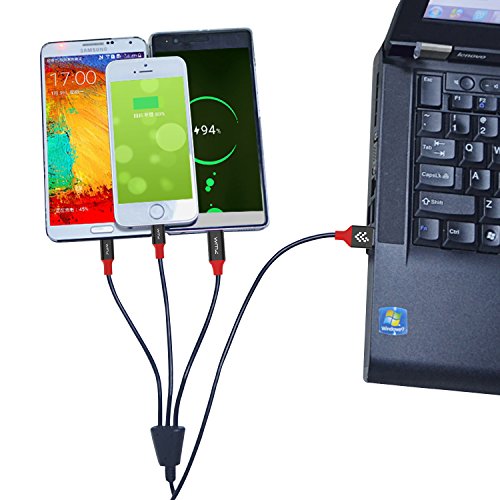- [Sturdy and Durable]:It supports all kind of latest smartphones and tables.Durable and sturdy than other normal cables,made of the latest technology allows simultaneous charging and using up to three device,without damage of quality.