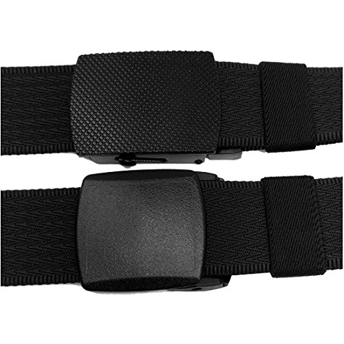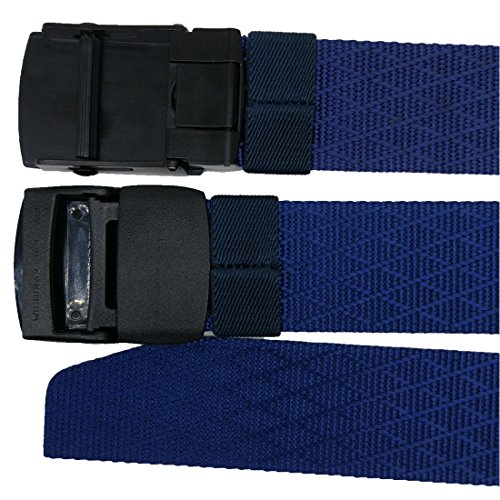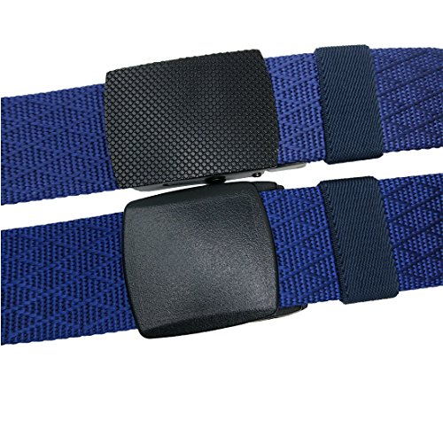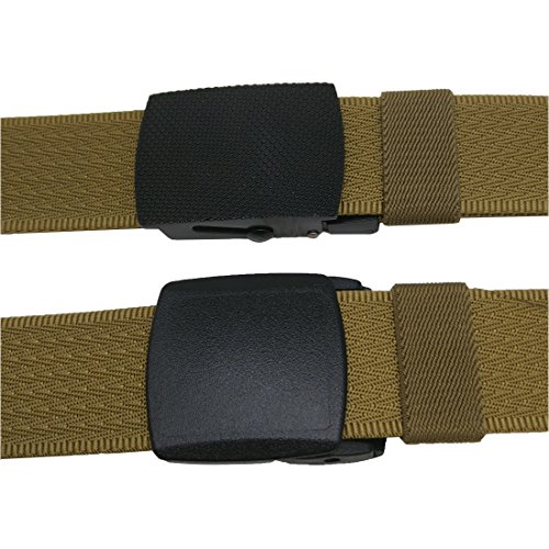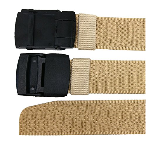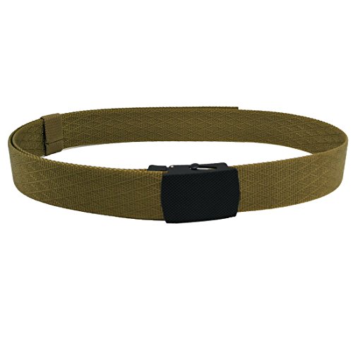 ADJUSTABLE BELT: You can take of the buckle and put it back freely. No holes in the belt strap. Web belt total size is 49inch( 125cm), include the buckle. If it is too long for you, you can trim it to fit your waistline ( trimming steps as picture shows). This web belt fit for waistline 28"-42".