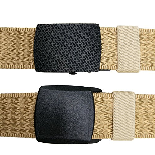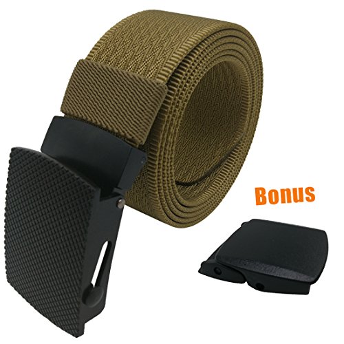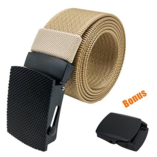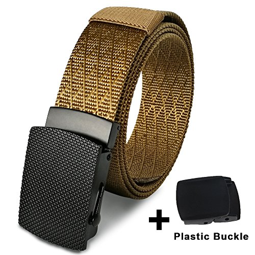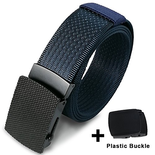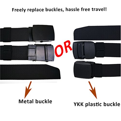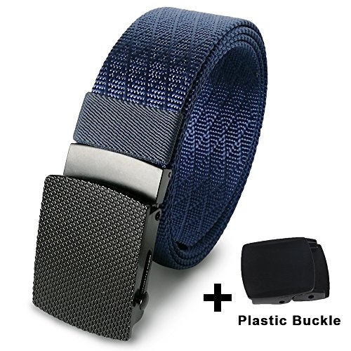 Hoanan totally offering 10 kinds nylon belts. Each belt is enclosed with an extra gift-a plastic buckle. That means if you buy one belt, you can totally get two buckles( a metal one and a plastic on). You can replace the buckle freely. We package the belt with a classic black gift box for your good impression.