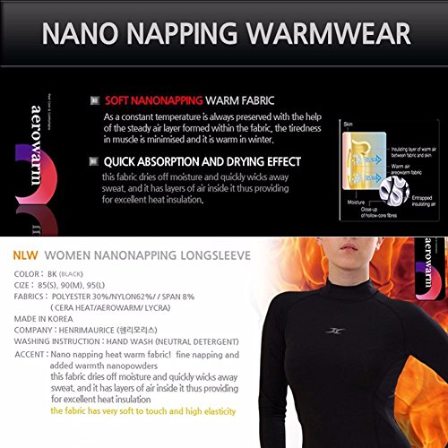-. Binding : Apparel -. Brand : Henri maurice -. Department : womens -. Feature : Thermal effect / temperature preserved /moisture management with Aerogear & Aerowarm Napping fabric / Air bound in the aerowarm fabric by Double Layer fabric improves thermal effect for winter season / It makes a nice and pleasant condition for exercises due to its super light spandex which is soft, wearable, flexible / Spandex with high-elasticity allows the sweat to be quickly absorbed and dried / Perfect fit to the body - high quality product Made in Korea (Korea fabric not in China) -. ProductGroup : Apparel -. ProductTypeName : UNDERWEAR -. Title : Mock Turtleneck Women Thermal Underwear Shirts Tops Base Layer Compression NLW