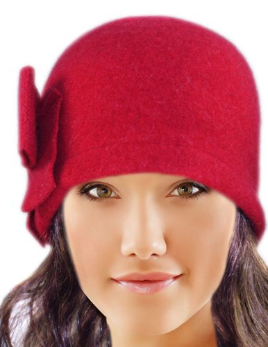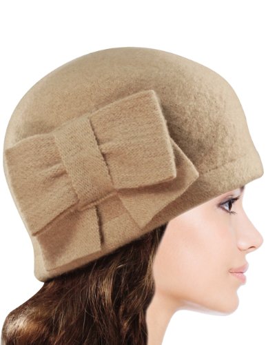 -. Feature : Width: 11 inches, height: 8 inches, Made of 100% Wool / Made of 100% Wool / Fashionable and classic style large bow design cloche bucket hat for women who especially love the flapper style / Available in various colors: Light Gray, Brown, Red, Teal Blue, Tan, Purple / Risk-Free Shopping: quality assurance in addition to a no-question-asked return policy
