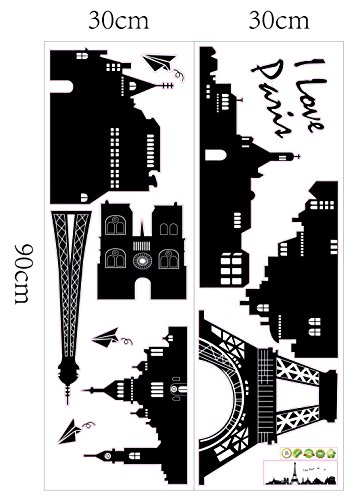 -. Title : Paris Wall Decals - Eiffel Tower Wall Decor - Black and White Wall Stickers - Peel and Stick by Dooboe