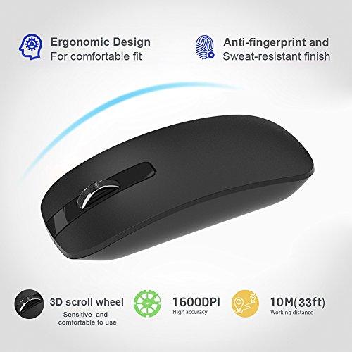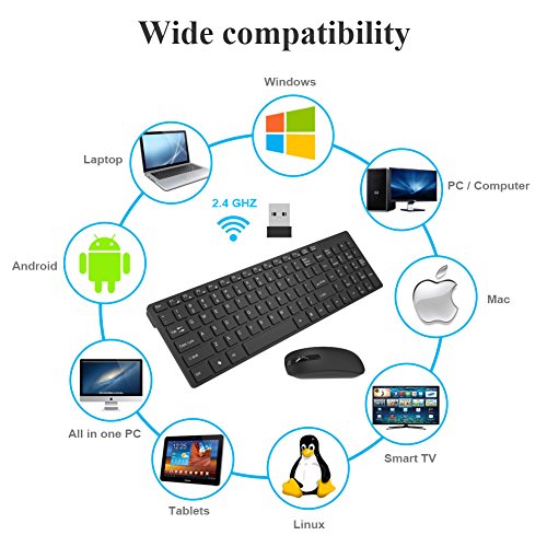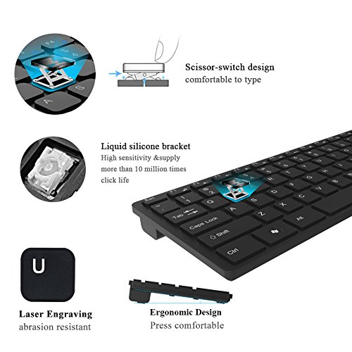 UPWADE Full Size Compact Wireless Keyboard and Mouse Combo Advanced 2.4 GHz wireless Work or play in more places. The wireless connection virtually eliminates delays, dropouts and interference and gives you a range of up to 33ft/10m range.