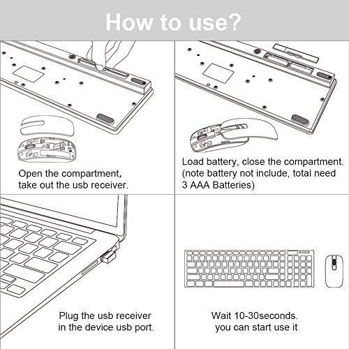 【What you get】1x Wireless keyboard, 1xwireless mouse,1xUSB Nano-Receiver. User Manual and Warranty Card and 12 Months Worry-free Product Guarantee. And our friendly customer service.